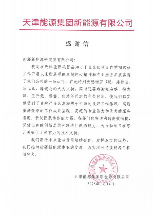 新疆新能源研究院收到“錦旗+表揚(yáng)信”